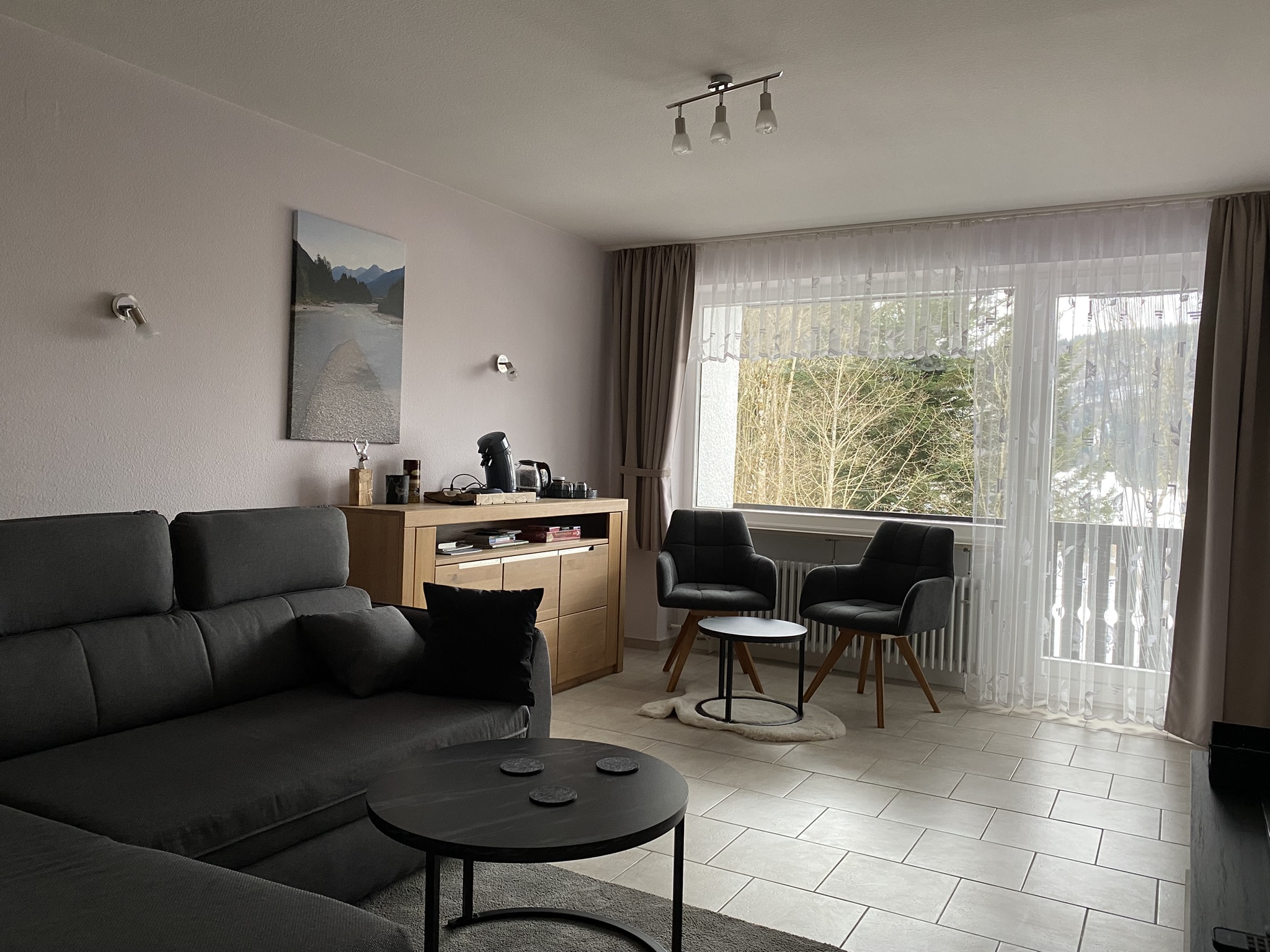 Die Wohnung mit Wohnzimmer, Schlafzimmer, Bad und Diele ist 48 m2 groß und im moderenen Alpenstil eingerichtet. Sie bietet Platz für bis zu 4 Personen. Kostenlose Parkplätze befinden sich direkt am Ferienpark. Es gibt Kabelfernsehen und kostenloses W-Lan in ihrer Ferienwohnung.